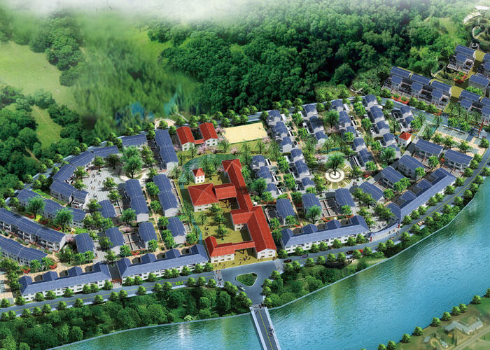 社會主義新農村民居建設,不是簡單地拷貝和復制中國傳統(tǒng)院落形式。運用于本案,我們不是在進行仿古建筑的設計,我們摒棄過于復雜與太過傳統(tǒng)的斗拱、椽檁等建筑符號。抽取傳統(tǒng)院落中的白墻、青瓦、庭院等符號,重新融合構置進全新的建筑肌理之中,賦予現(xiàn)代院落以生命,使其融入現(xiàn)代生活,成為我們的生活中的一部分。在沿街的建筑設計中,采用聯(lián)排式、開敞式設計,形成一種商業(yè)氛圍,與環(huán)境設計中的廣場、露天舞臺等一起,服務于旅游,讓游客不止成為過客,讓游客留下來,有玩、有住、有看,有紀念品買。