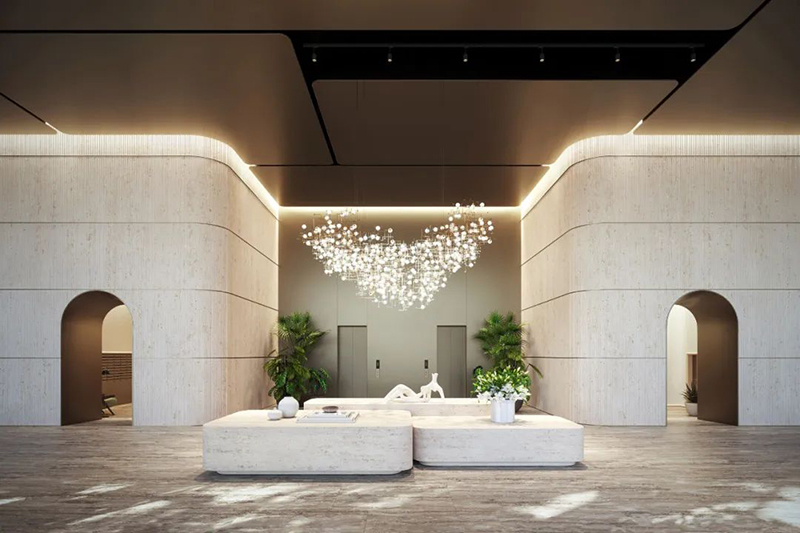 居民將享受超過(guò)7432平方米的專屬設(shè)施空間,分布在大樓的頂部三層。66層的健康俱樂部設(shè)有929平方米的水療和健身區(qū)域,包括Technogym設(shè)備、重量訓(xùn)練室、HIIT區(qū)域、瑜伽室、冥想室和美容套房。 67層的業(yè)主俱樂部提供雙層高的葡萄酒和烈酒休息室、私人餐廳、辦公套房和會(huì)議室。 70層的屋頂觀景臺(tái)設(shè)有成人專屬泳池、雙層高中庭休息室和天空酒吧,居民可在850英尺的高空享受壯麗景色。